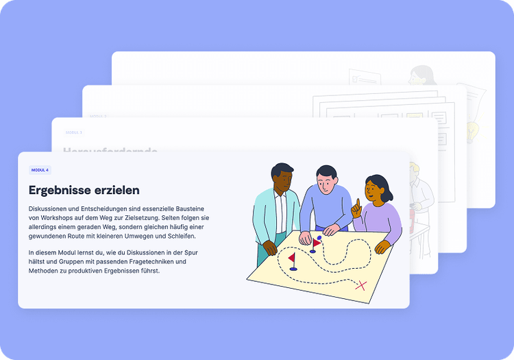 Sicherheit in Workshops und Meetings: Du lernst die Grundlagen guter Facilitation und Moderation und wie du auch mit herausfordernden Situationen umgehst.